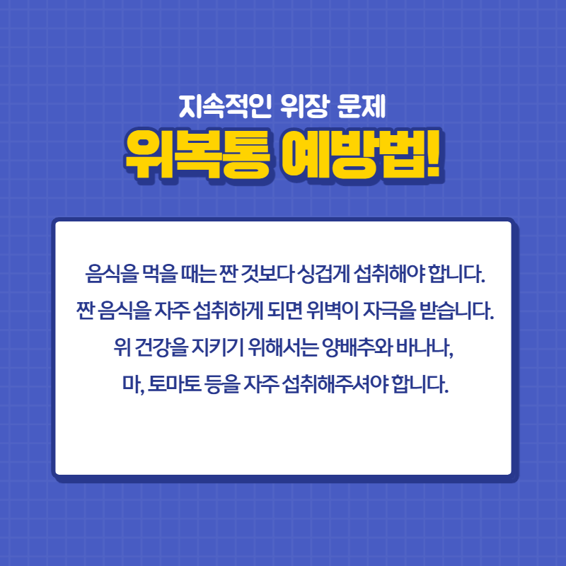 짠 음식을 자주 섭취하게 되면 위벽이 자극을 받습니다.